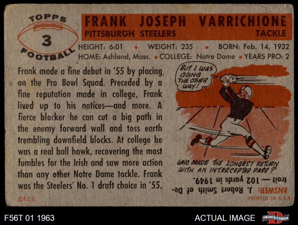 1956 Topps #3 Frank Varrichione 1 - POOR
