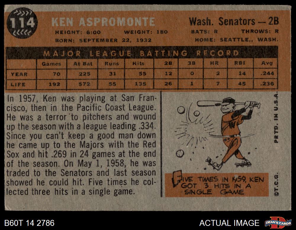 1960 Topps #114 Ken Aspromonte