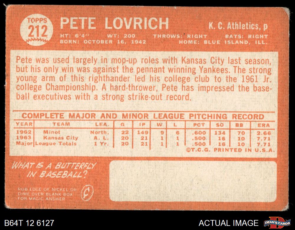 1964 Topps #212 Pete Lovrich