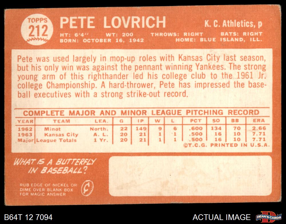 1964 Topps #212 Pete Lovrich 2 - GOOD