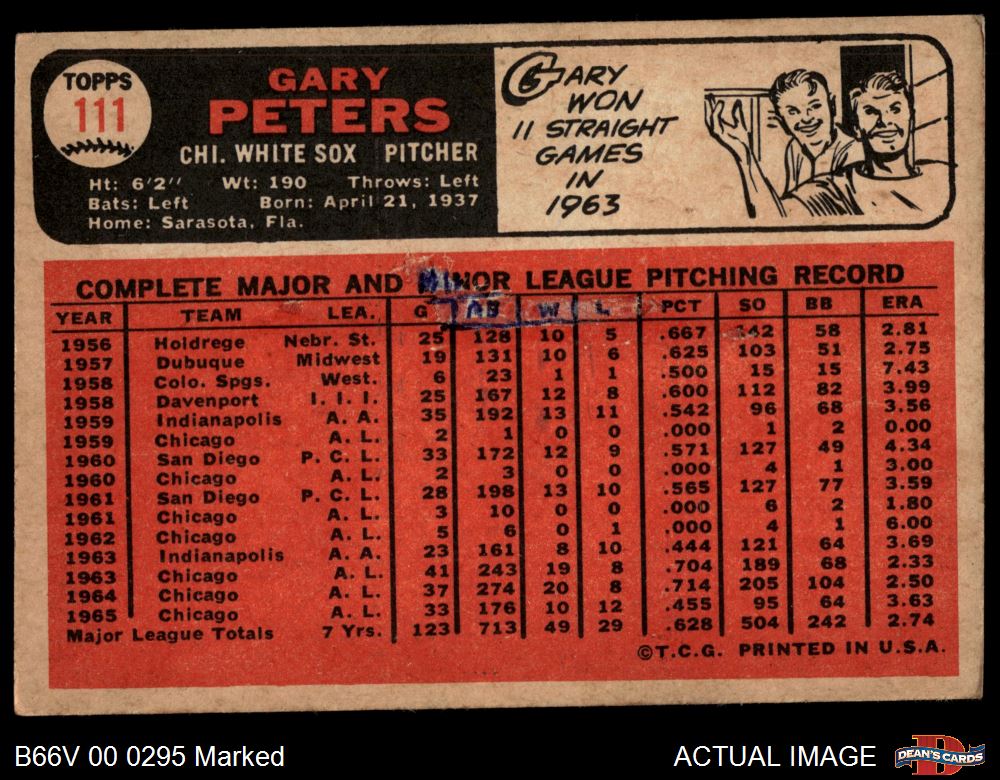 1966 Topps Venezuelan #111 Gary Peters 1.5 - FAIR