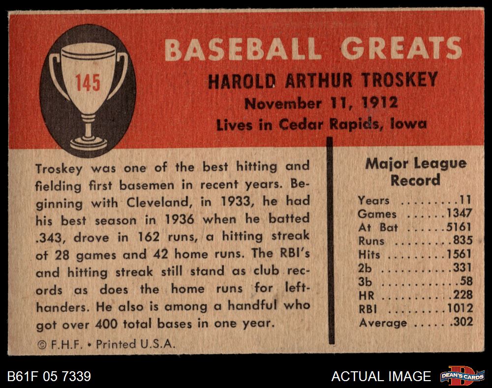 1961 Fleer #145 Misspelled as Troskey Hal Trosky 4 - VG/EX
