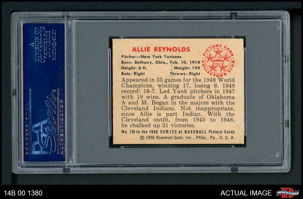 1950 Bowman #138 Allie Reynolds