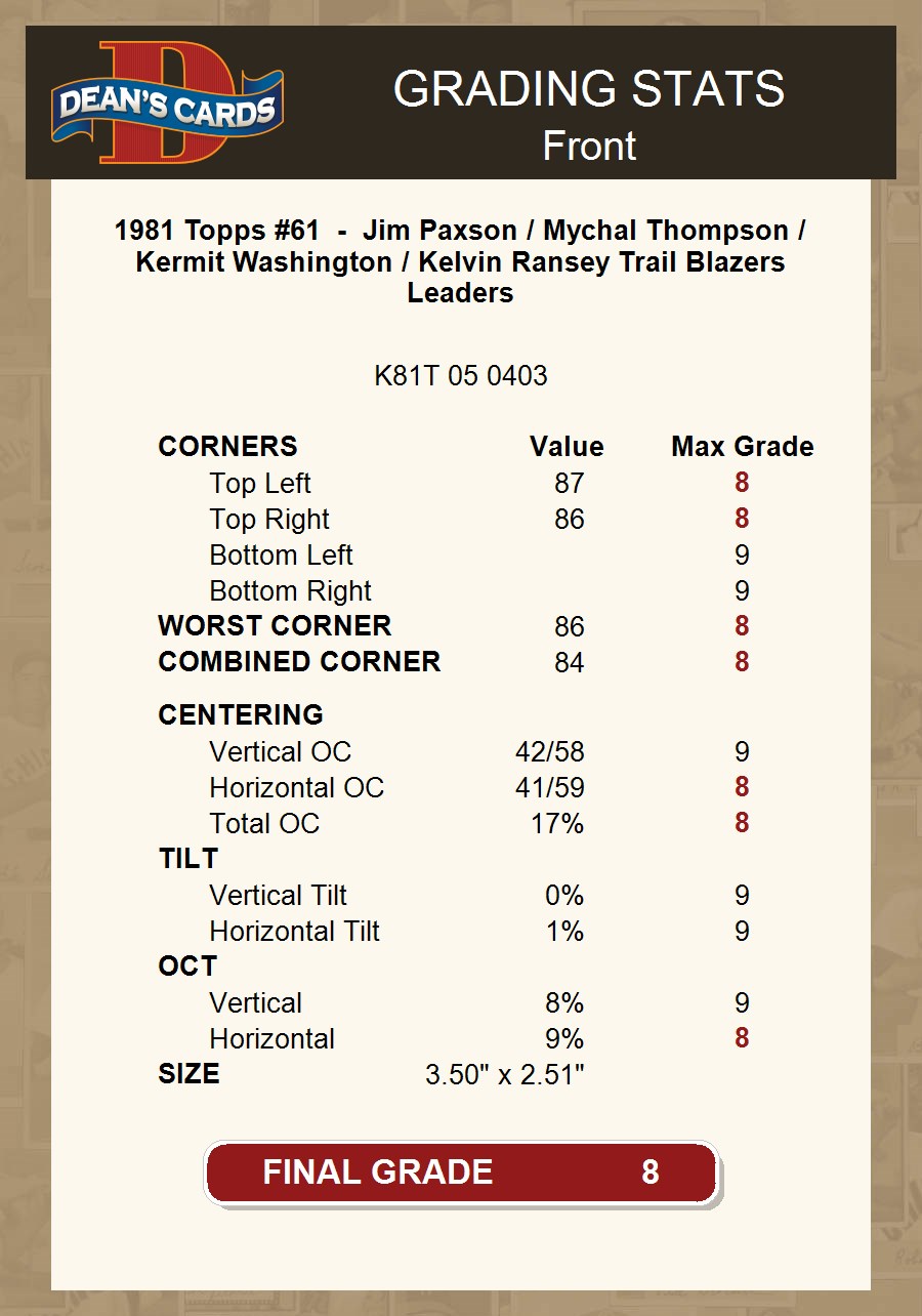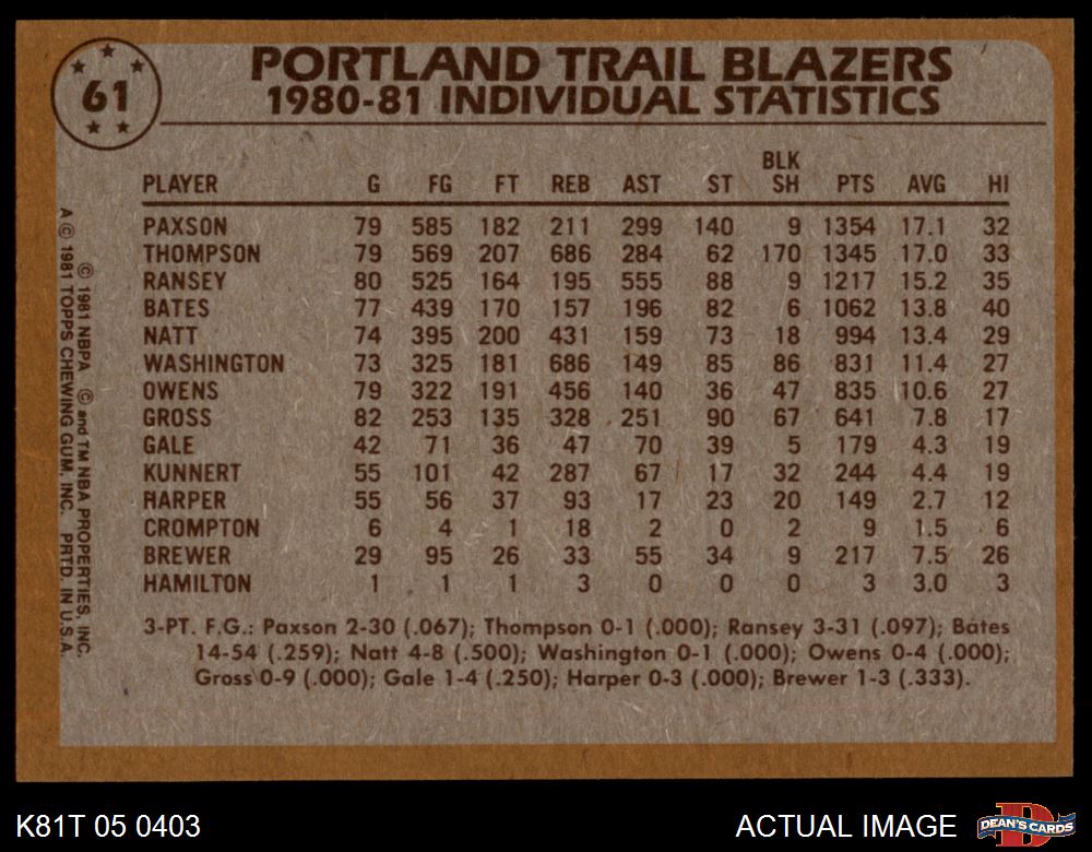 1981 Topps #61 - Jim Paxson / Mychal Thompson / Kermit Washington / Kelvin Ransey Trail Blazers Leaders 8 - NM/MT