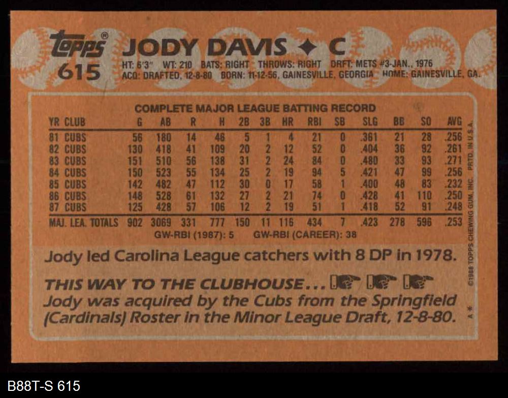 1988 Topps #615 Jody Davis