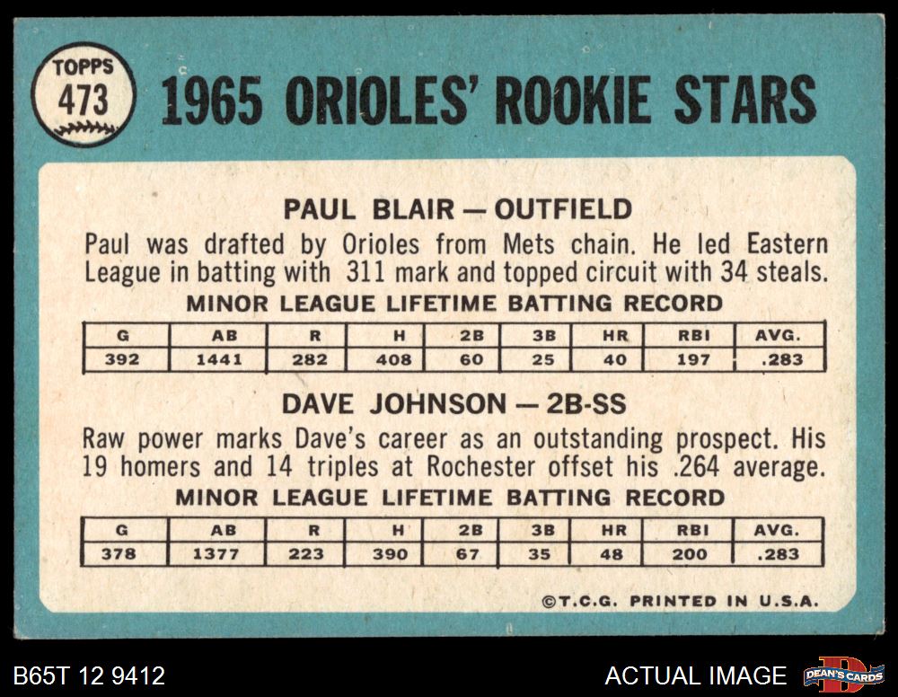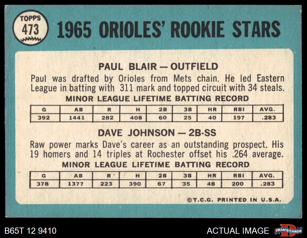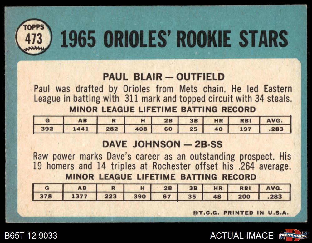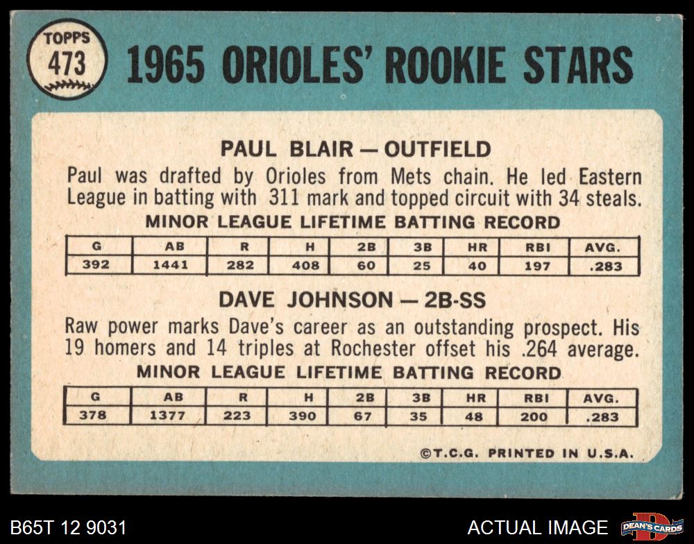 1965 Topps #473 - Paul Blair / Davey Johnson Orioles Rookies 4 - VG/EX