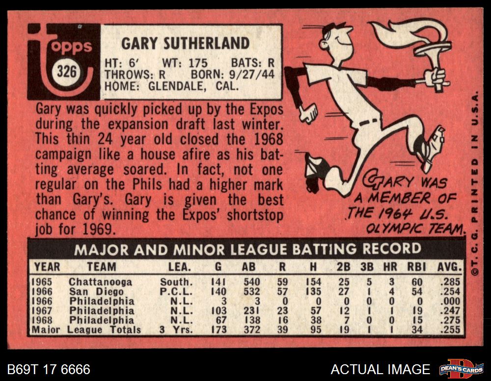 1969 Topps #326 Gary Sutherland 7 - NM