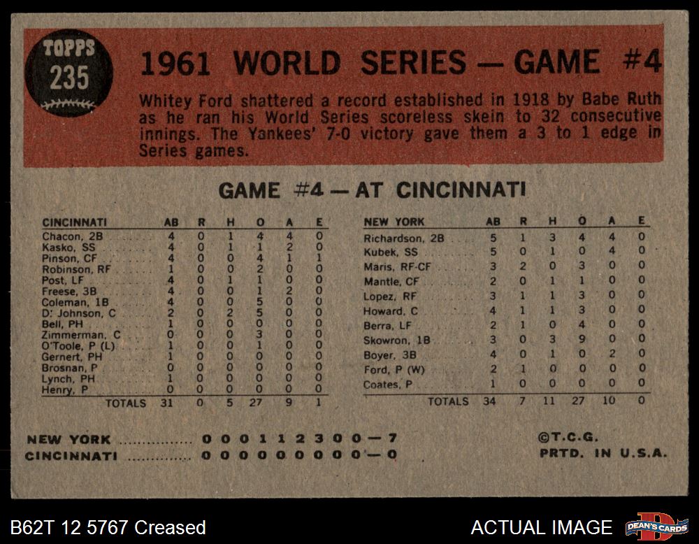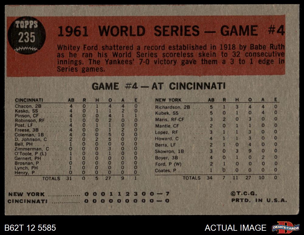 1962 Topps #235 1961 World Series - Game #4 - Ford Sets New Mark