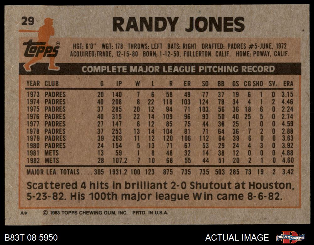 1983 Topps #29 Randy Jones 8 - NM/MT