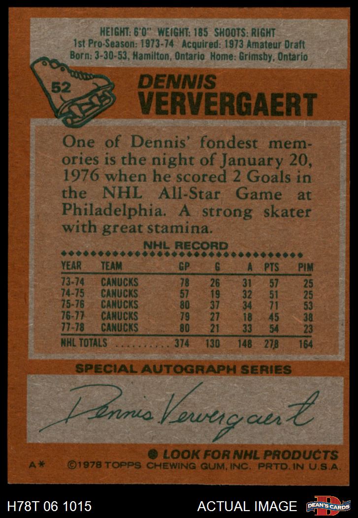 1978 Topps #52 Dennis Ververgaert 7 - NM