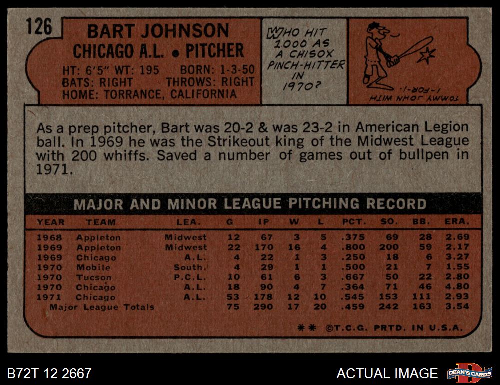 1972 Topps #126 Bart Johnson