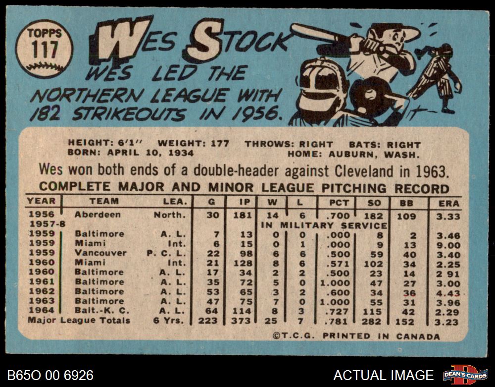 1965 O-Pee-Chee #117 Wes Stock