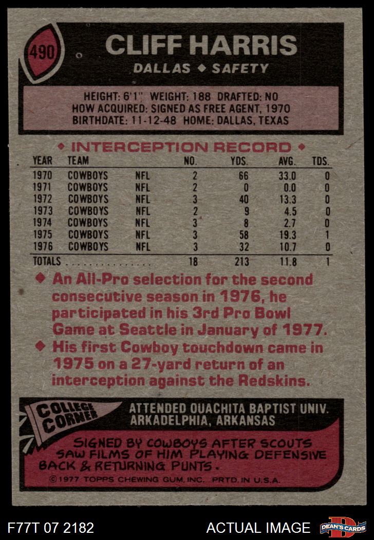1977 Topps #490 Cliff Harris