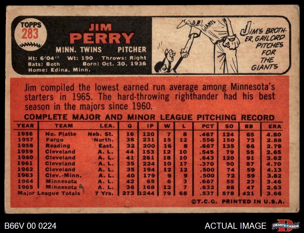 1966 Topps Venezuelan #283 Jim Perry 4 - VG/EX