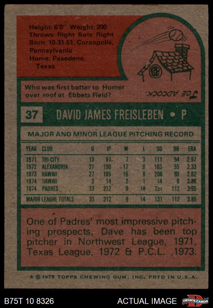 1975 Topps #37 Dave Freisleben 6 - EX/MT