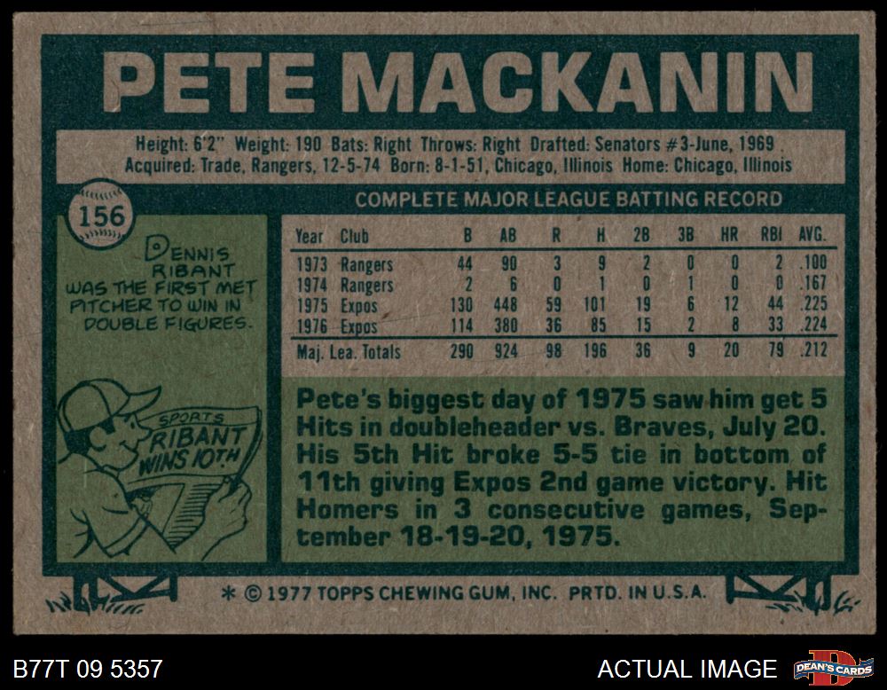 1977 Topps #156 Pete Mackanin 4 - VG/EX