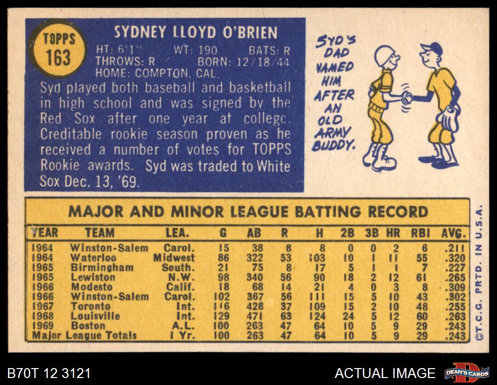 1970 Topps #163 Syd O'Brien 4.5 - VG/EX+