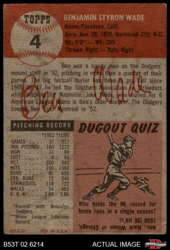 1953 Topps #4 Ben Wade 2 - GOOD