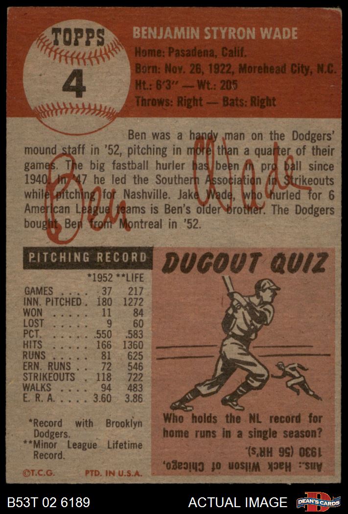 1953 Topps #4 Ben Wade 4 - VG/EX