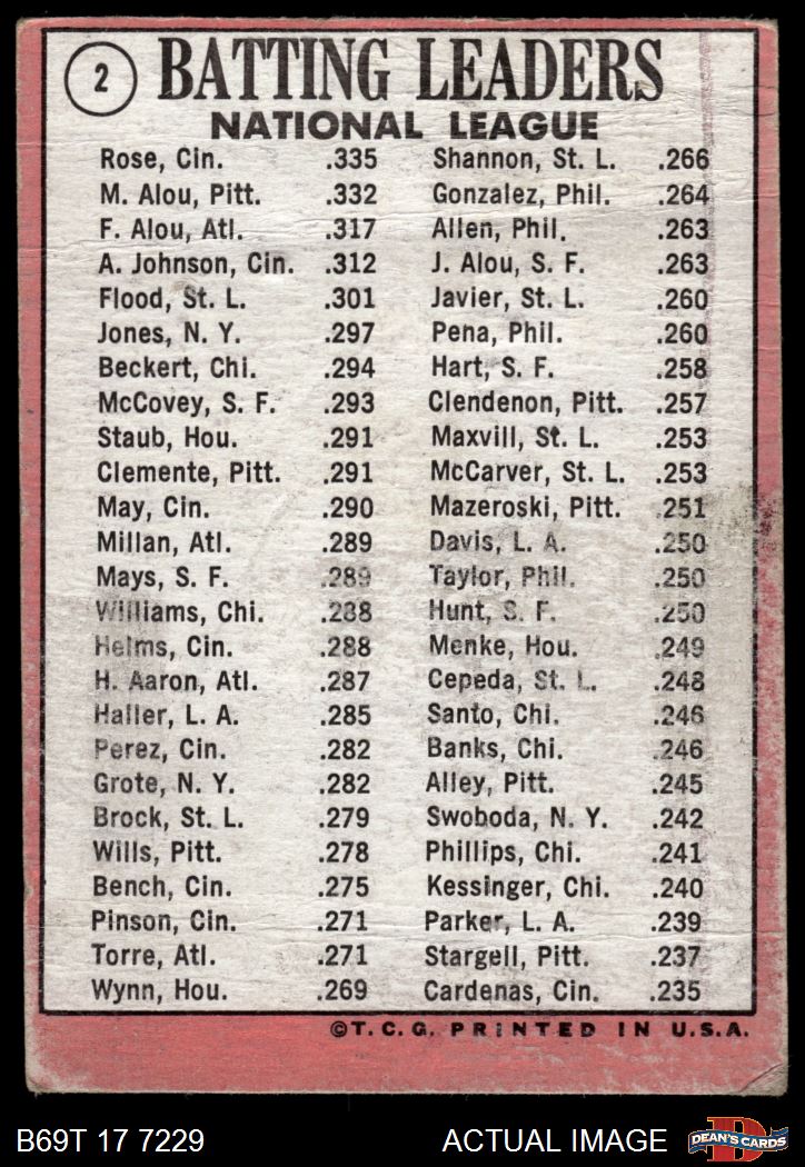 1969 Topps #2 - Pete Rose / Matty Alou / Felipe Alou NL Batting Leaders 1 - POOR
