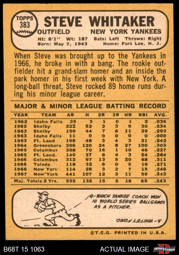 1968 Topps #383 Steve Whitaker 6 - EX/MT