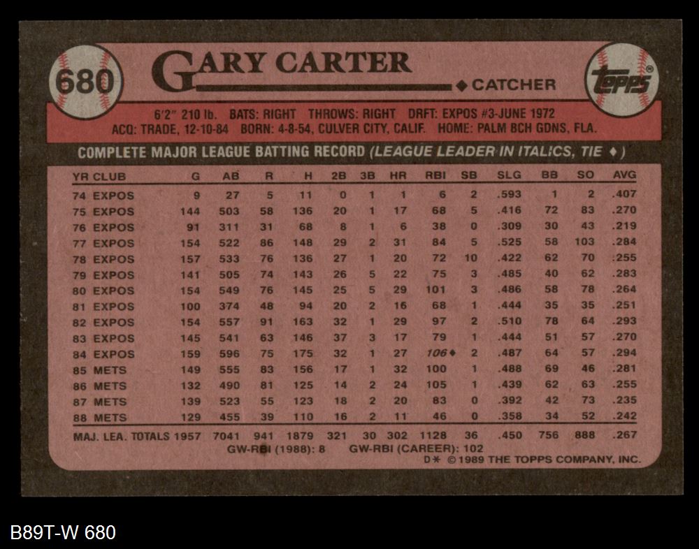 1989 Topps #680 Gary Carter