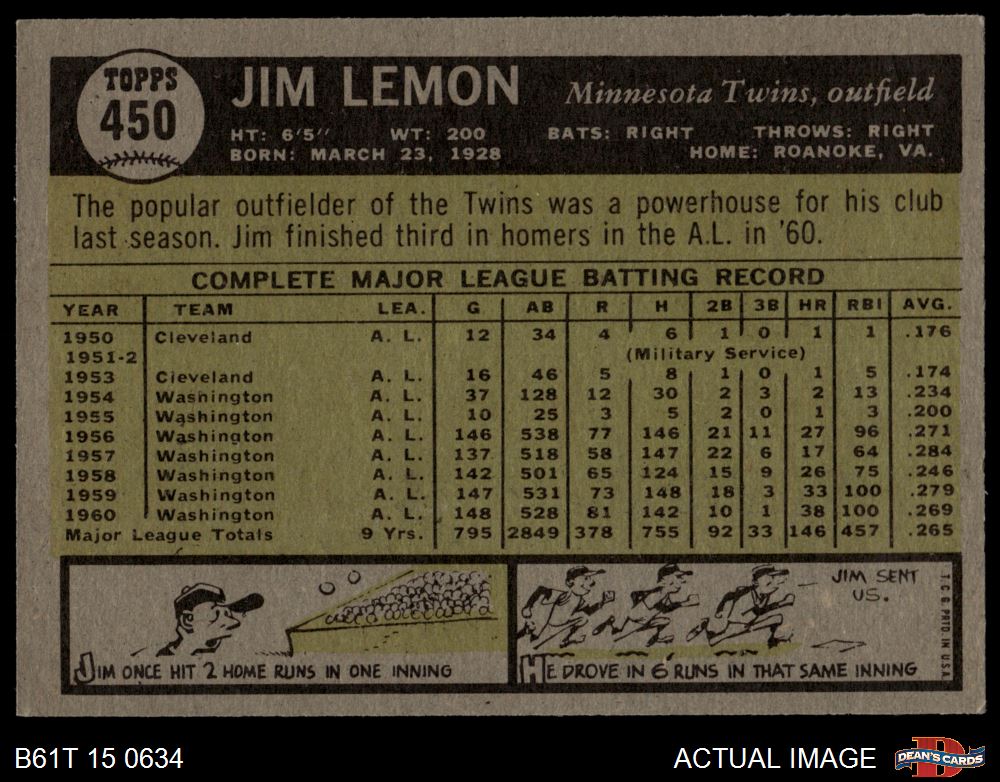 1961 Topps #450 Jim Lemon 5.5 - EX+