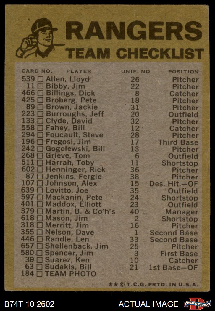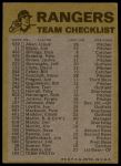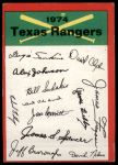 1974 Topps  Texas Rangers Red Team Checklist Front Thumbnail