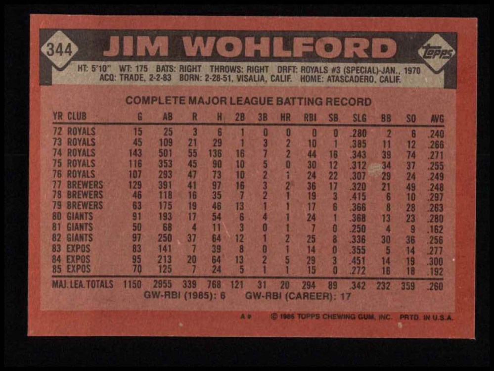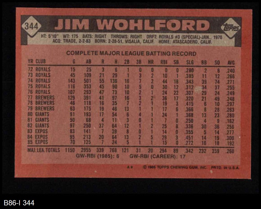 1986 Topps #344 Jim Wohlford