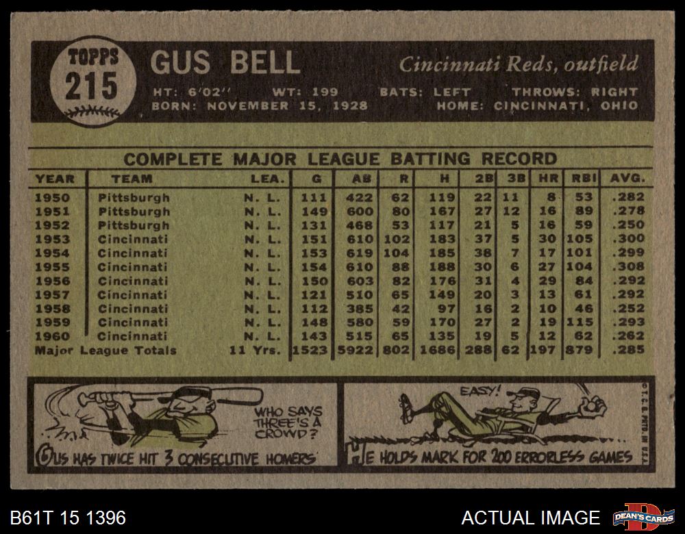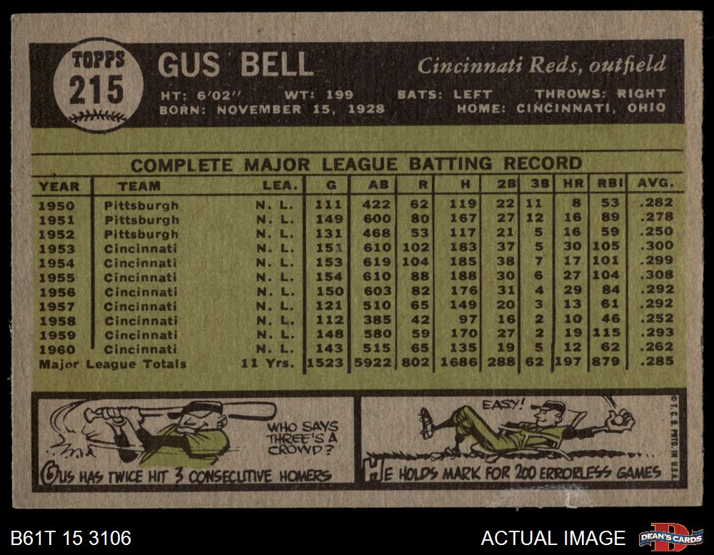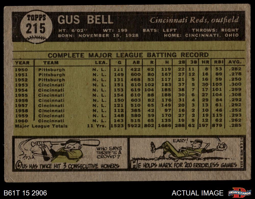 1961 Topps #215 Gus Bell