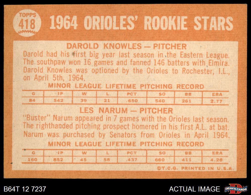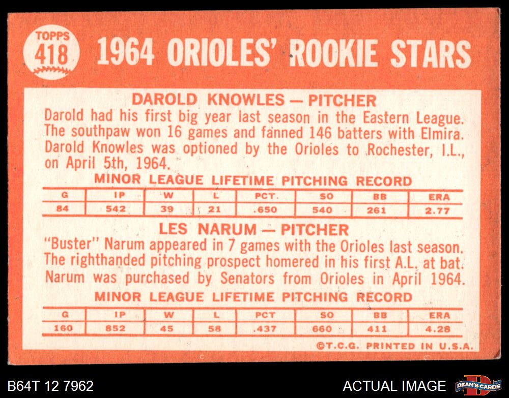 1964 Topps #418 - Darold Knowles / Les Narum Orioles Rookies 3 - VG