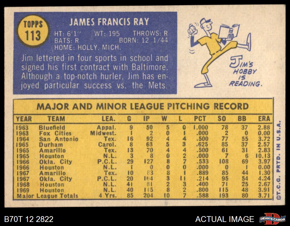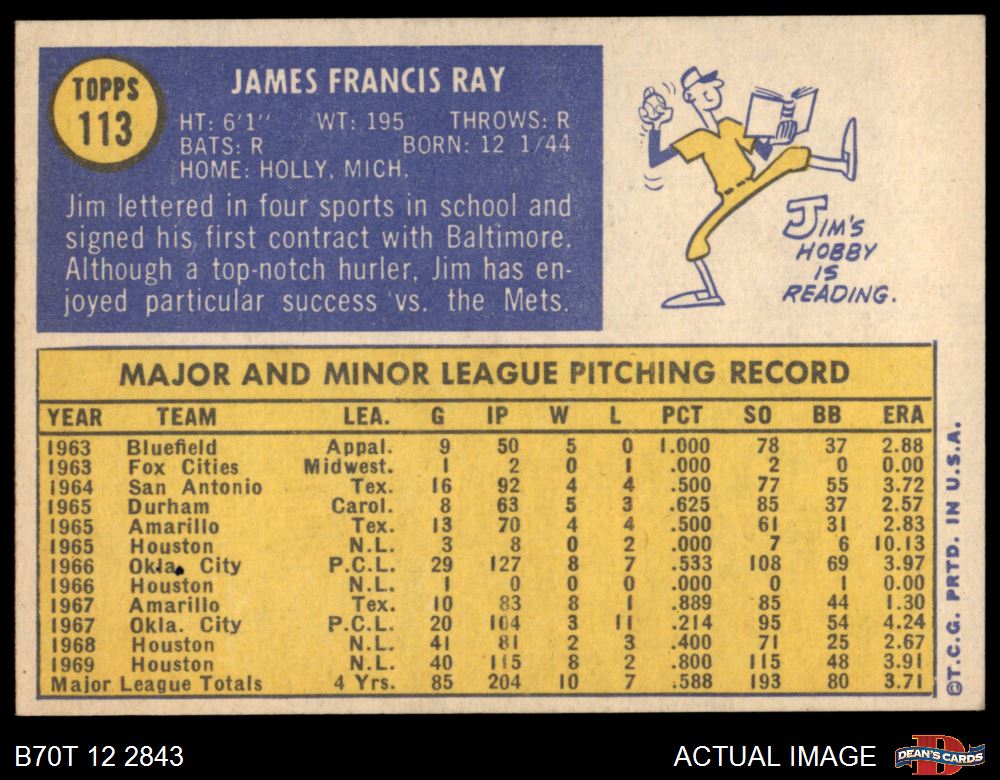 1970 Topps #113 Jim Ray 6 - EX/MT