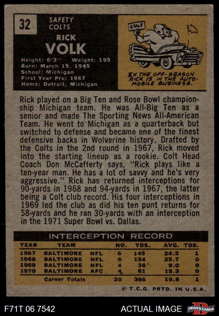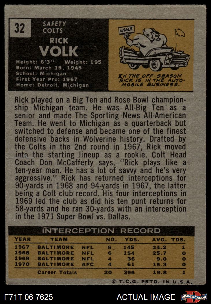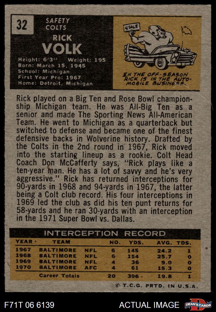1971 Topps Football Cards (5,408 available)1971 Topps Colts (209 available)