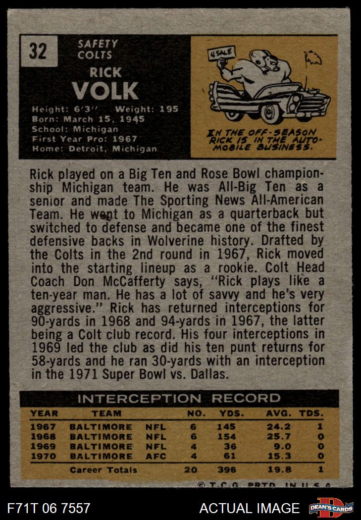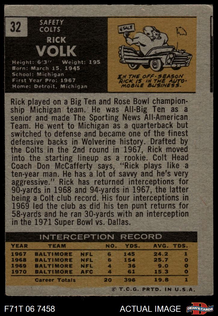 1971 Topps #32 Rick Volk