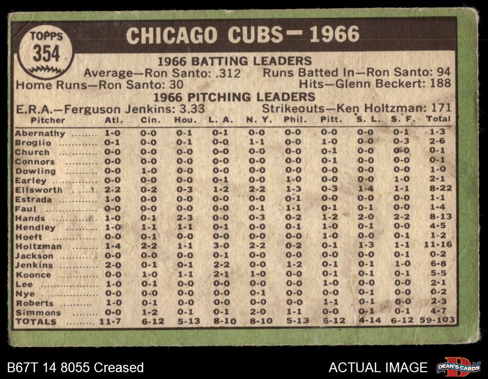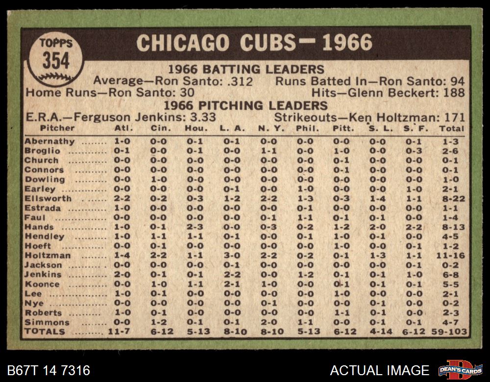 1967 Topps #354 Cubs Team