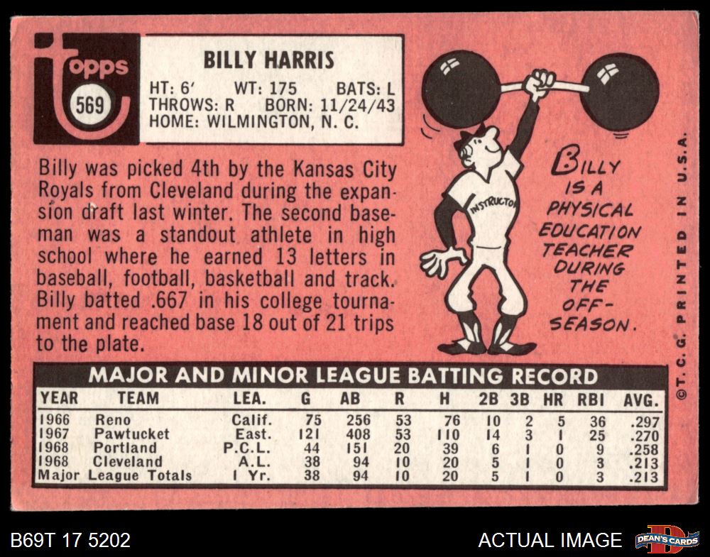 1969 Topps #569 Billy Harris 4 - VG/EX