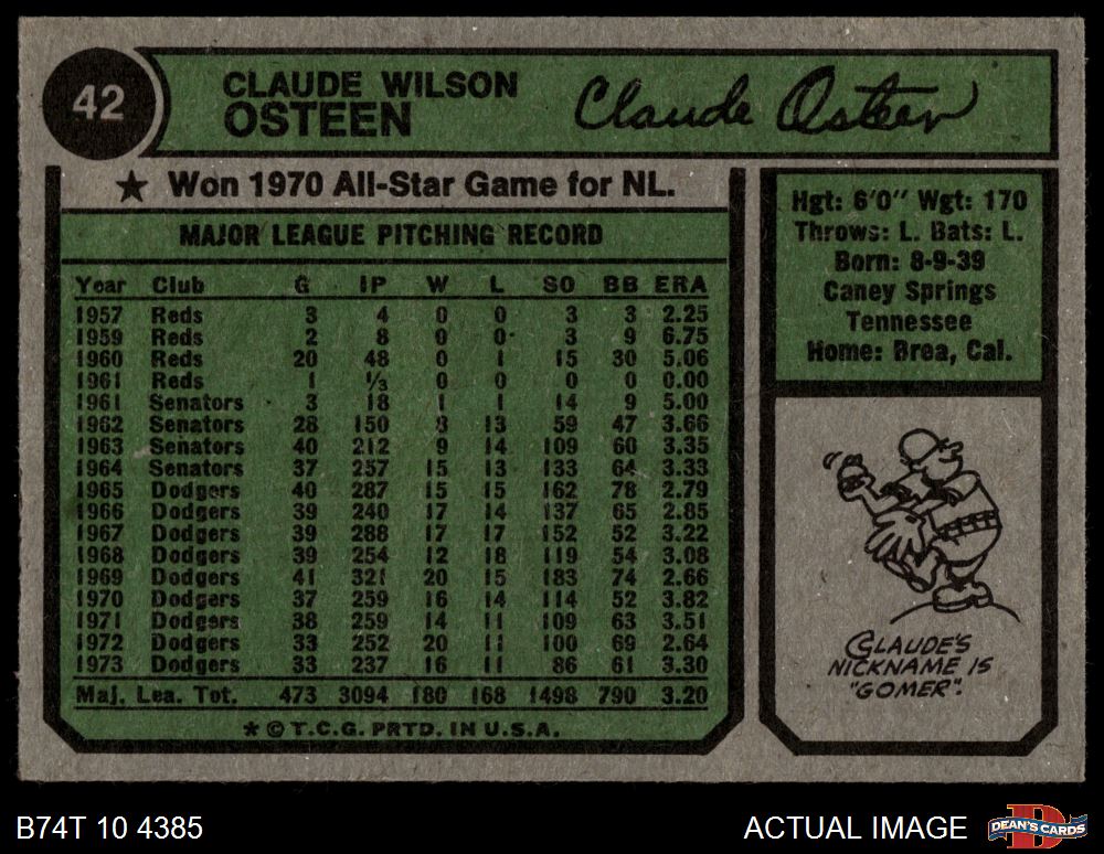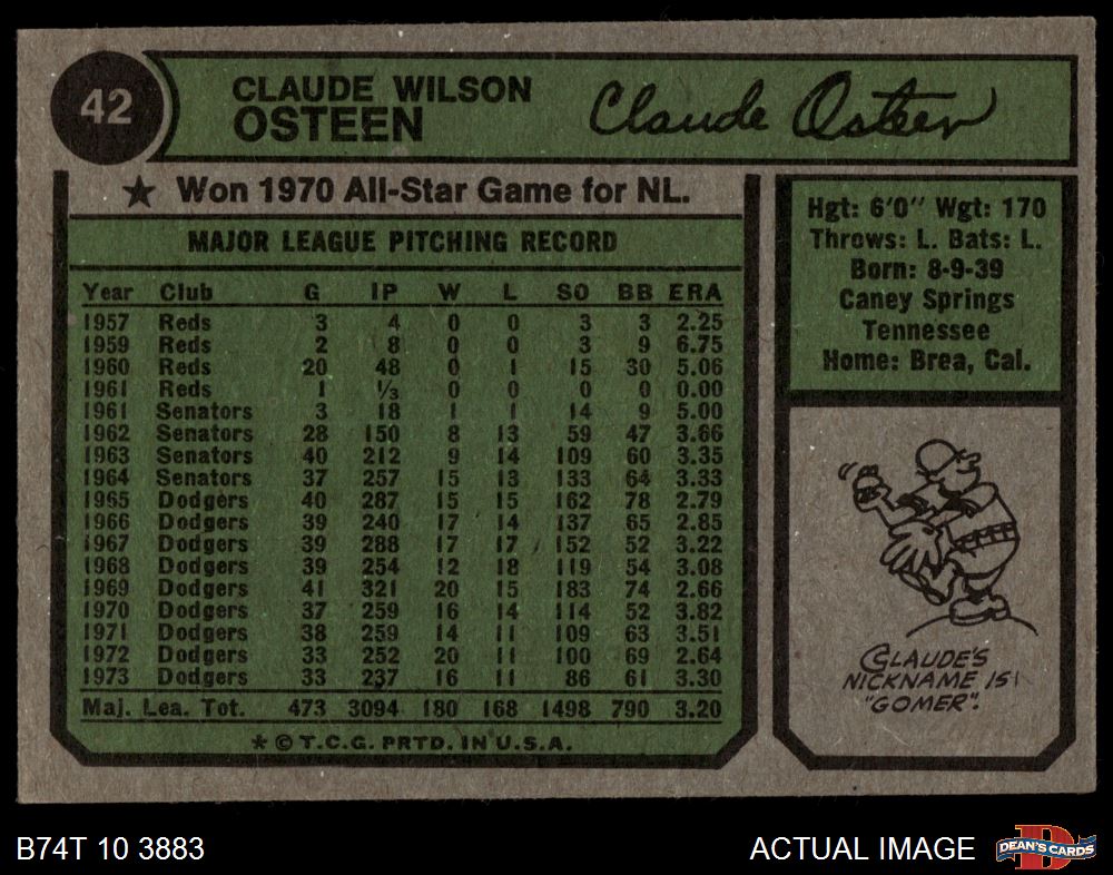 1974 Topps #42 Claude Osteen