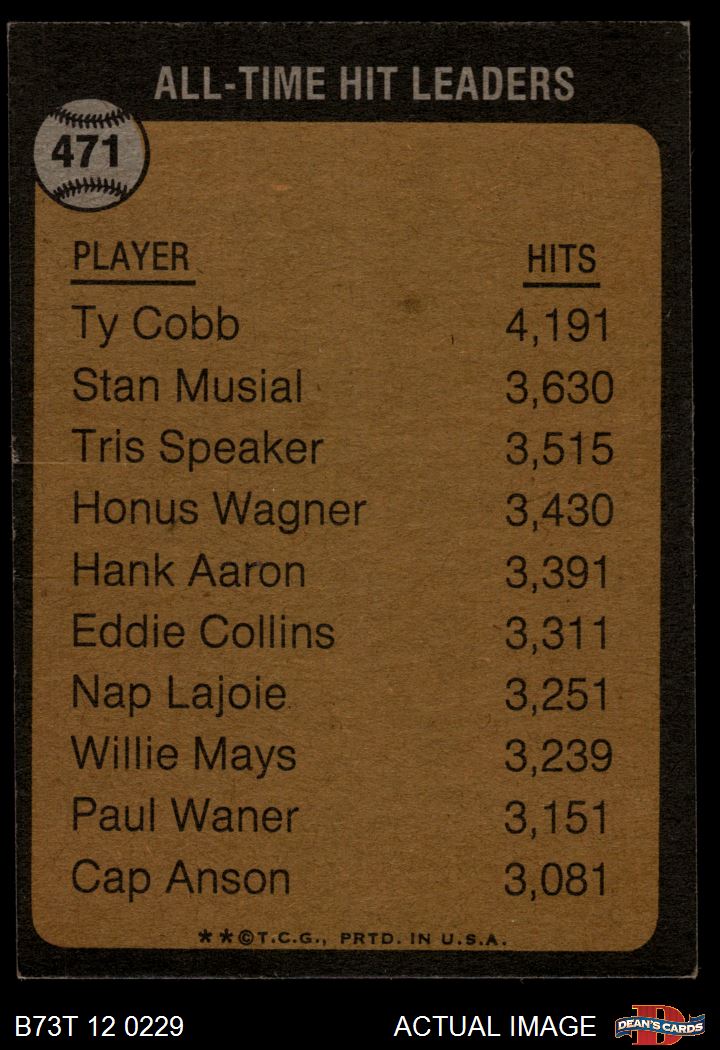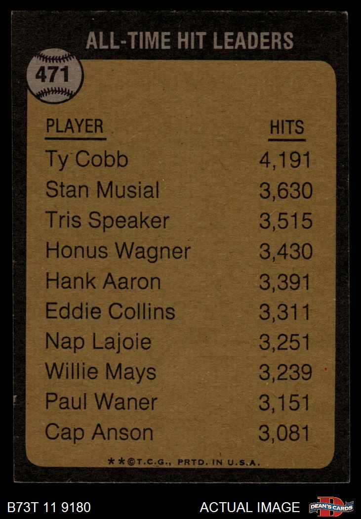 1973 Topps #471 All-Time Hit Leader