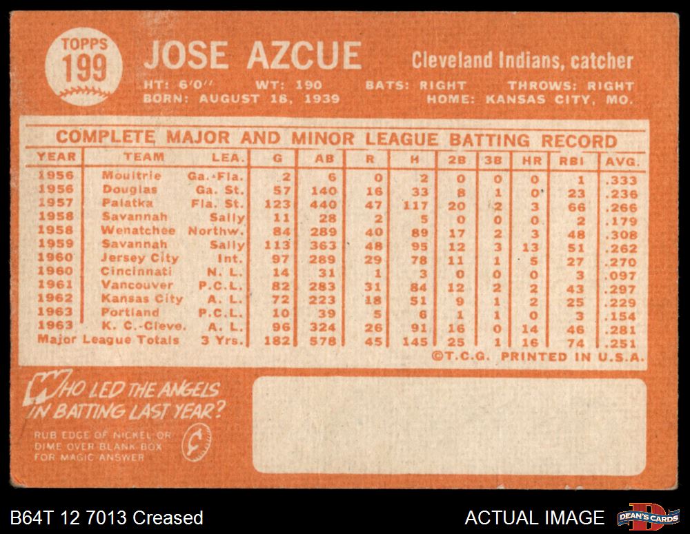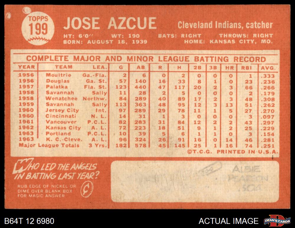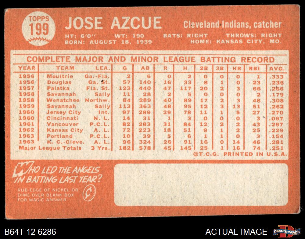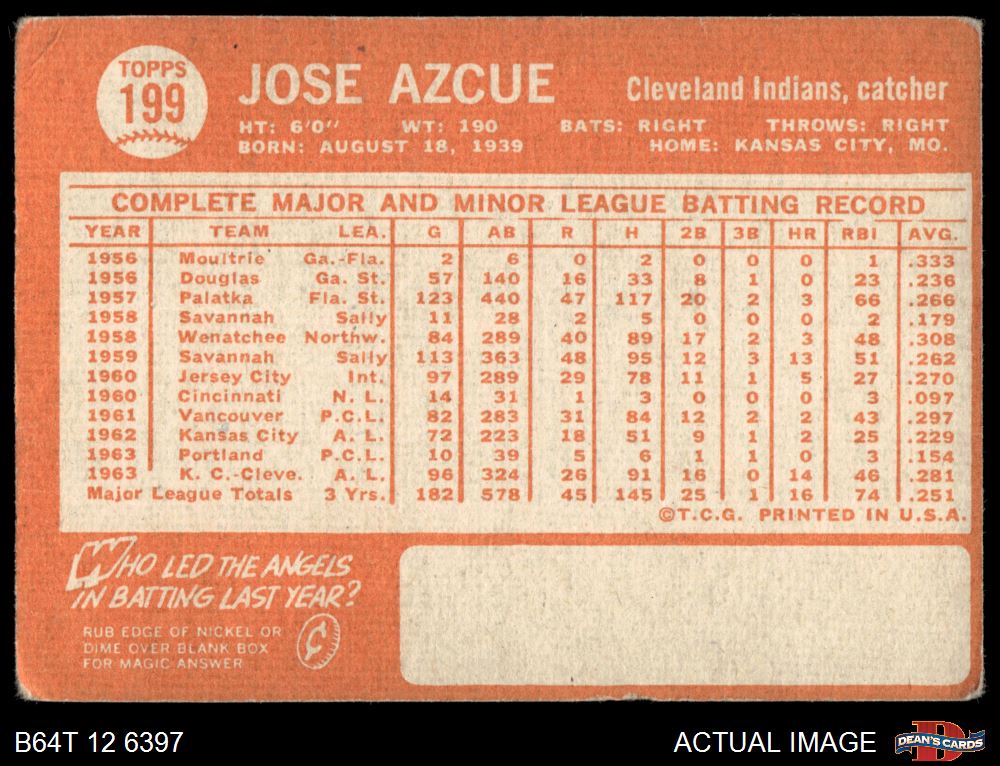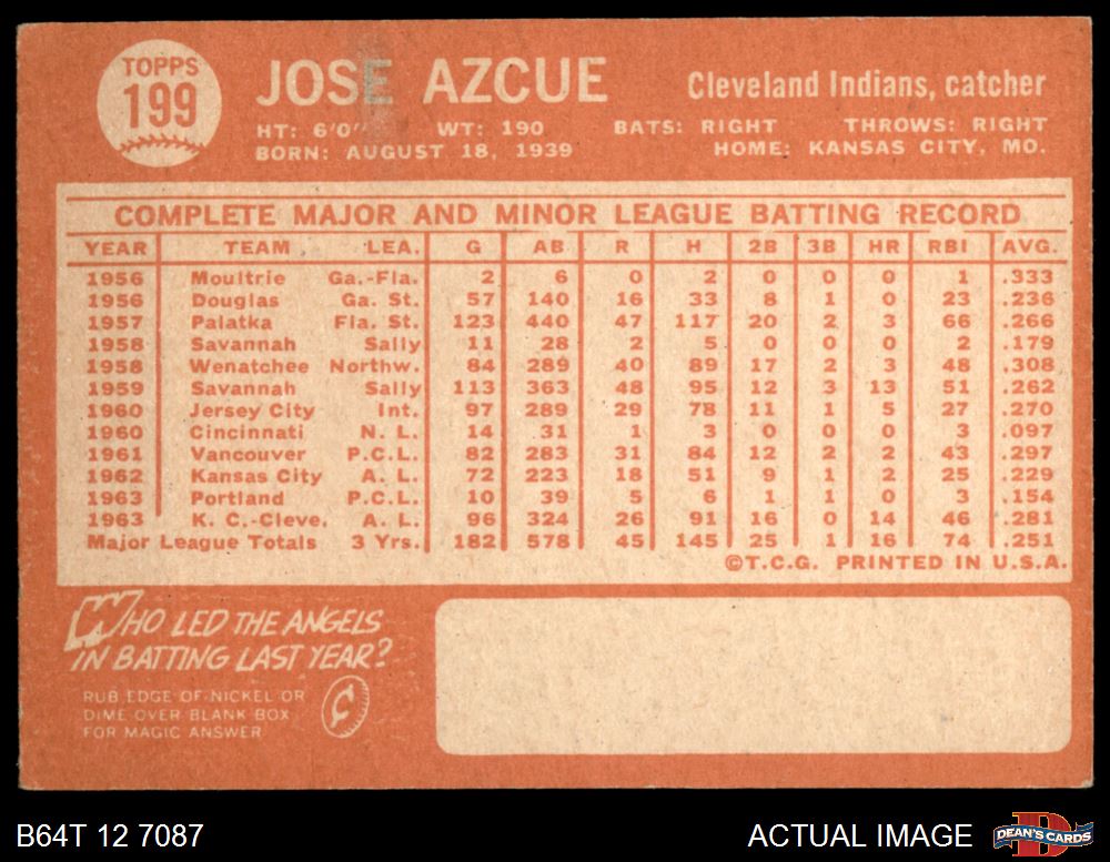 1964 Topps #199 Joe Azcue