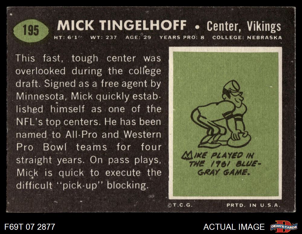 1969 Topps #195 Mick Tingelhoff