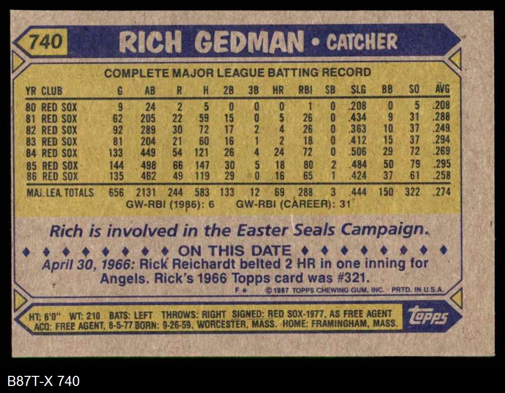 1987 Topps #740 Rich Gedman
