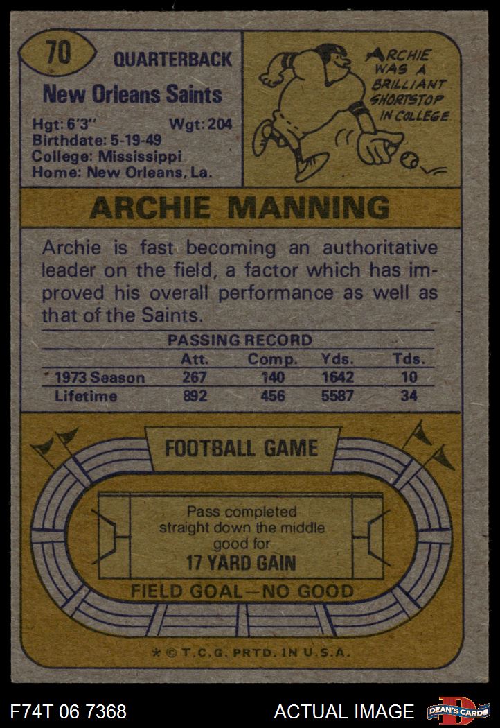 1974 Topps #70 Archie Manning 4 - VG/EX