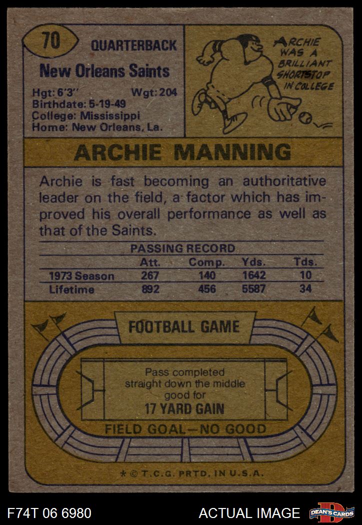 1974 Topps #70 Archie Manning 4.5 - VG/EX+