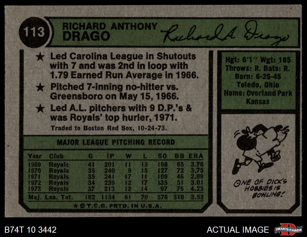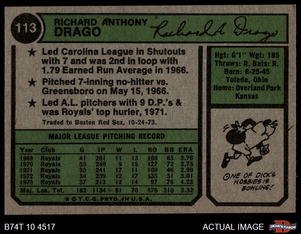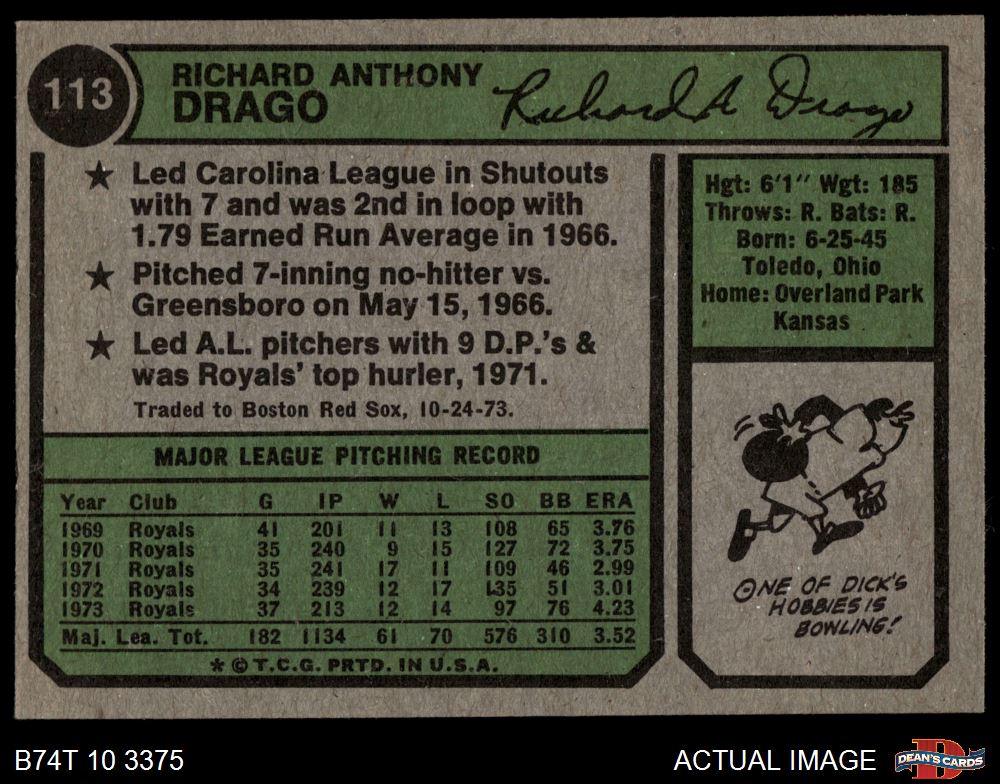 1974 Topps #113 Dick Drago