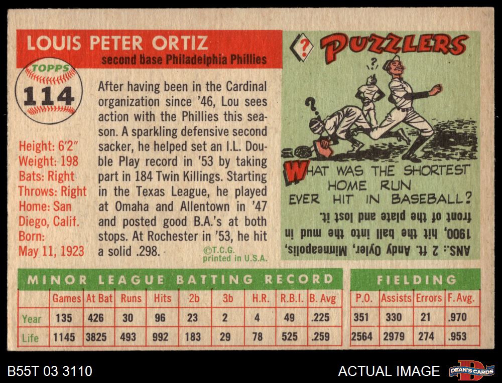 1955 Topps #114 Lou Ortiz 3 - VG