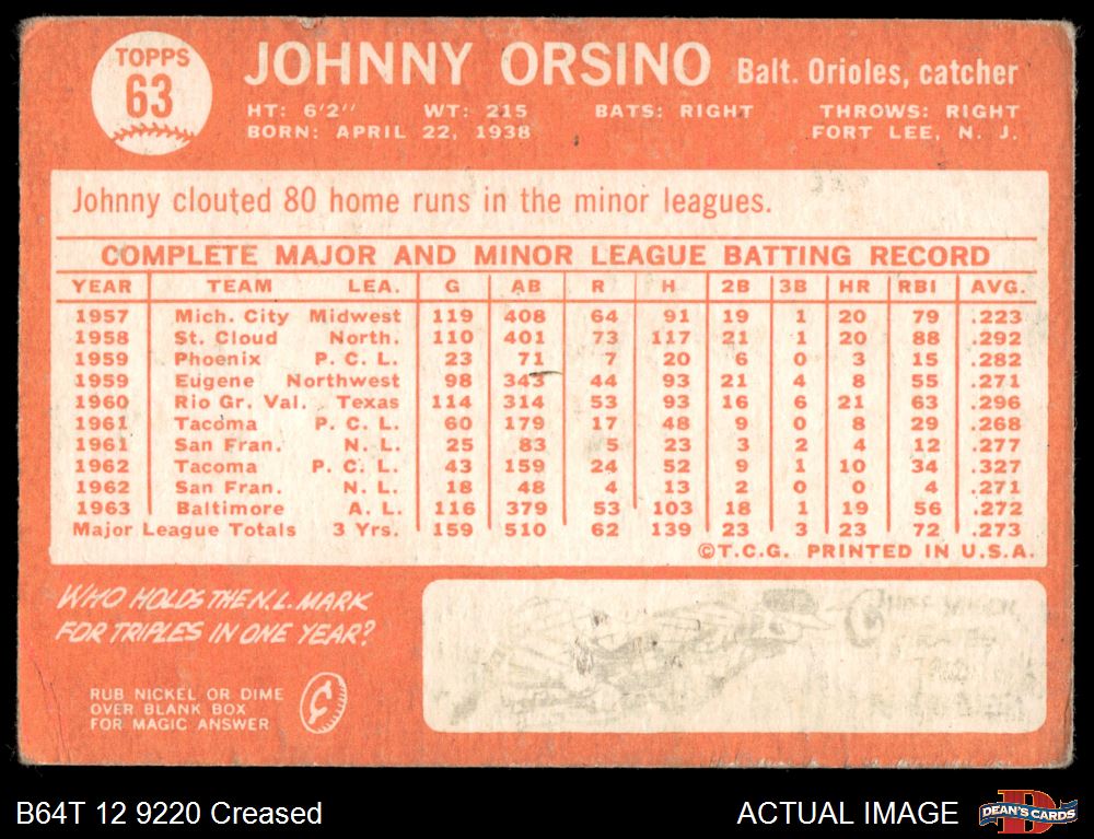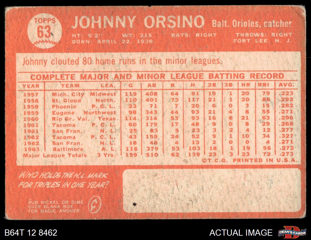 1964 Topps #63 John Orsino 1.5 - FAIR