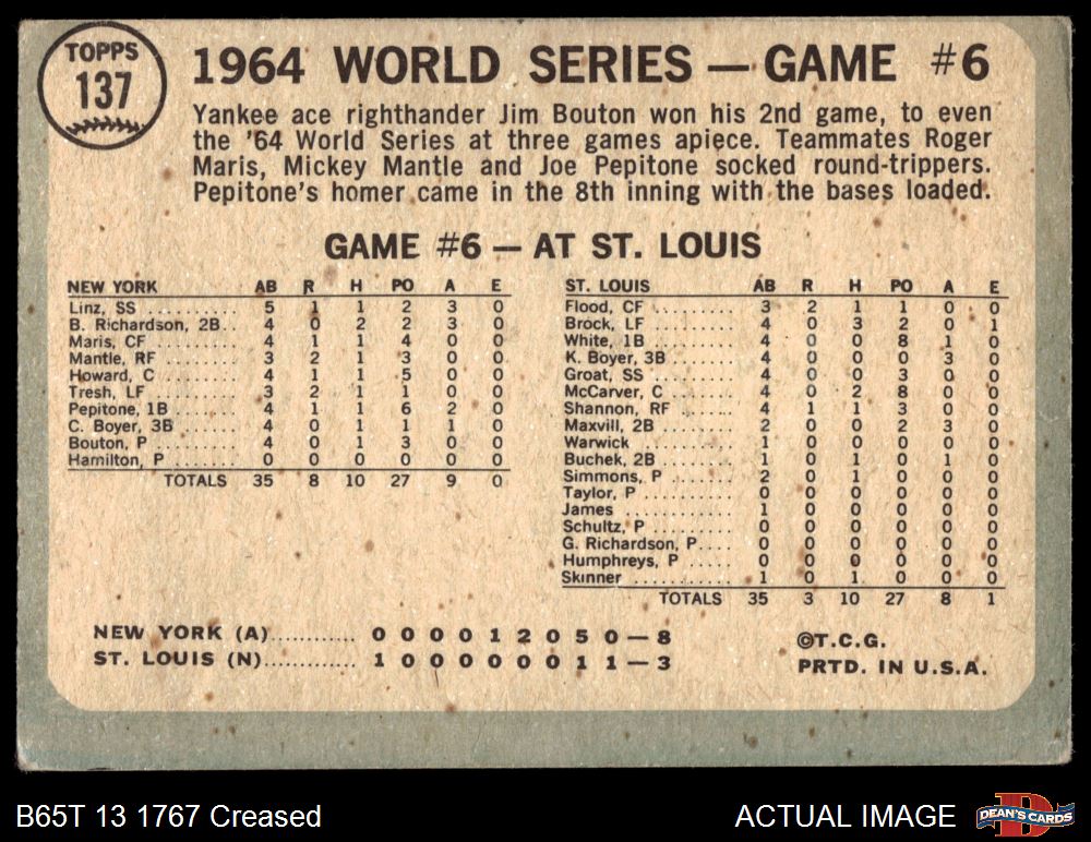 1965 Topps #137 - Jim Bouton 1964 World Series - Game #6 - Bouton Wins Again 2 - GOOD
