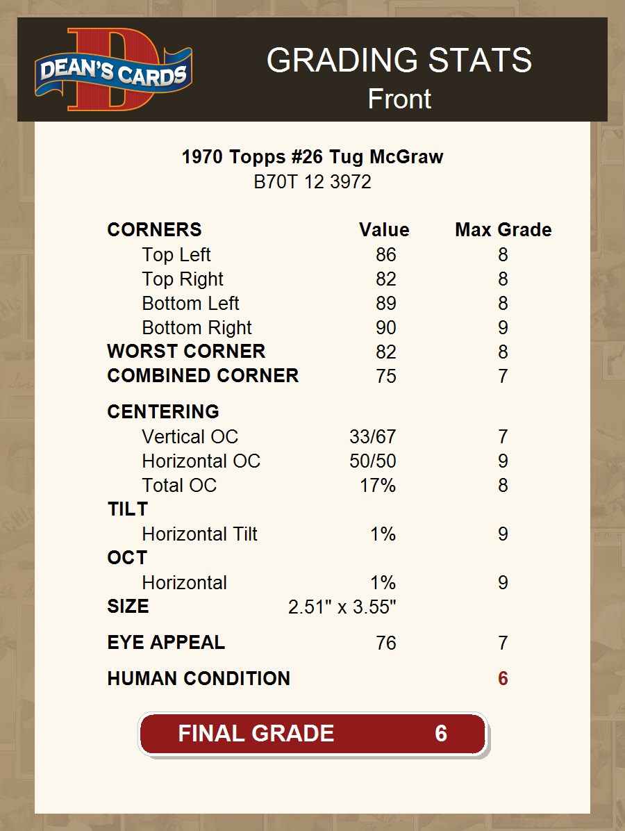 1970 Topps #26 Tug McGraw 6 - EX/MT