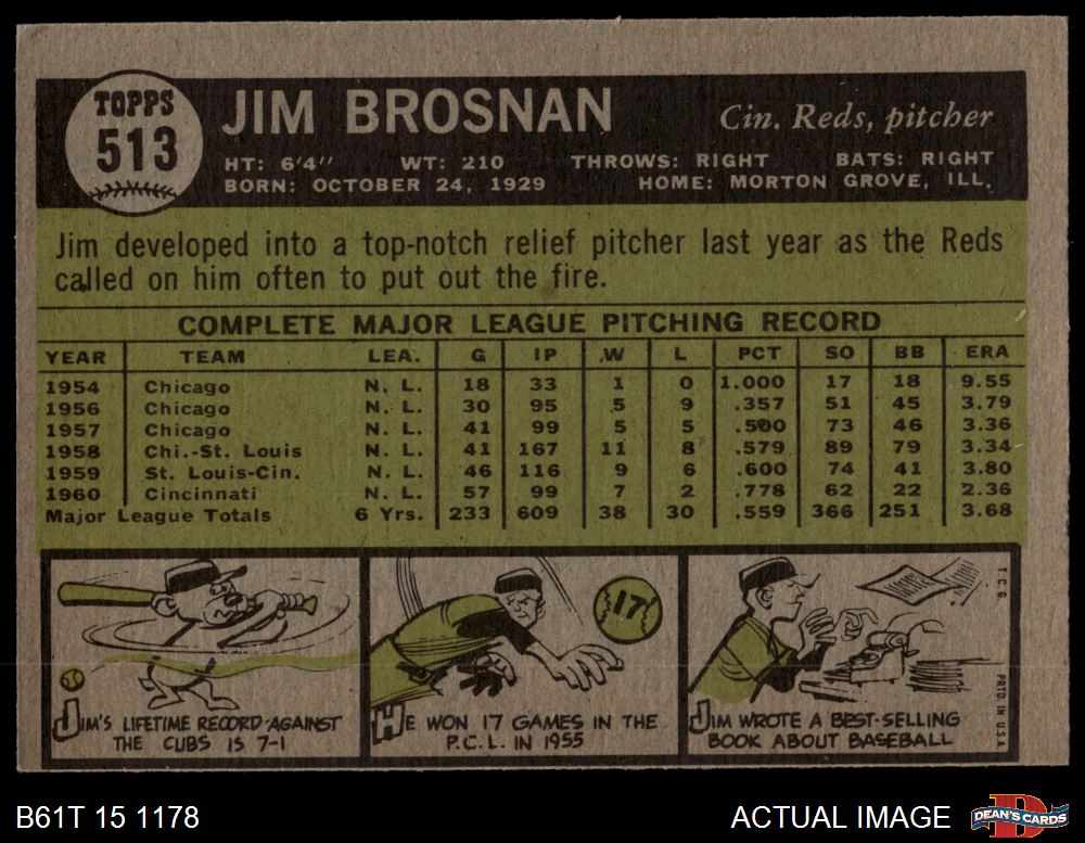 1961 Topps #513 Jim Brosnan 2 - GOOD