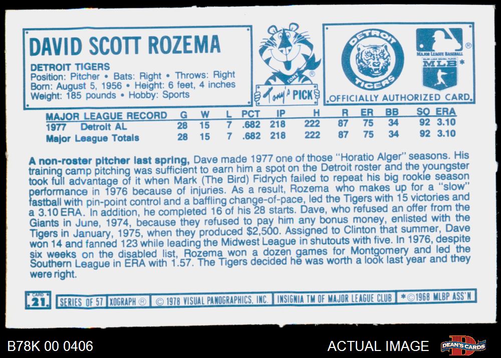 1978 Kellogg's #21 Dave Rozema 8 - NM/MT